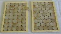 この問題は、なかなか楽しいです。箱の中には、5×8で40個の円板が入っています。並べかえることで、もう1個を入れなさいというものです。写真の右が、その解答になっています。要するに、すきまの面積の問題です。参考図書には、タバコのパッケージも同様になっていると紹介してありました。