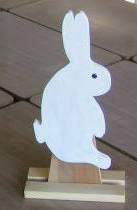 これらの問題は、国語の教科書にも使用されています。立てておけばウサギですが、横に倒せばアヒルに見えてきます。ある人は、「カモノハシ」といいましたが、デザインに問題があったようです。裏からも木ネジでとめ、回転できるようにしました。