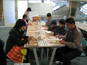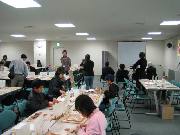 昼の時間帯は、入場者が減りました。昼食を取りに外出したり、次の目的地に行ったようです。スタッフ15人は三交代で、別室で弁当を食べました。その後再び入場者が増え始め、活気が出てきたのです。写真5。
