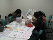 15人のスタッフは、子どもたちの世話を一生懸命してくれました。ボールピラミッドなどは、実際に組み立ててみせました。しきつめや色あわせの問題も、年齢に関係なく人気がありました。写真4。