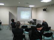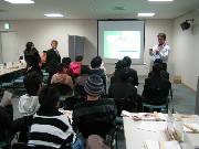 このビデオ視聴コーナーの目的は、もう一つあったのです。それは宮崎先生が企画した、「算数・数学クイズ王選手権」です。午後2時から始まりました。パソコンを使用して、問題を与えていきます。中学生が挑戦してくれましたが、内容も中学生向きだったようです。数式の問題やメビウスの帯の問題も出題されました。得点が高かった数人に、100円ショップの商品がプレゼントされました。写真7。
