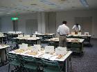 準備をしたのは、前日8月31日(金)の放課後です。学校の教材をトラックに積み込み、2人の先生に協力してもらいました。会館2階の会議室に教材を搬入し、長机の並べ替えから始めました。教材の展示は1時間程度で終り、そのままの状態で帰宅しました。今回の算数・数学おもしろランドは、広用紙の展示と印刷問題は使用しませんでした。