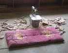 写真2は、工作室に置いている糸のこです。糸のこ周辺には、のこくずと切りくずが散乱しています。ほとんど毎日この部屋に入って作業をしますから、掃除をしようなどとは考えないのです。ただし、ここに座って2時間ほど作業をしますと、ズボンが真っ白になります。来客があれば、タオルではたいて下に降ります。
