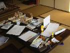 写真9。完成した作品は、学習机の上に広げました。簡単な物は2個作ったり、問題文との確認をするためです。また、それらは項目ごとに並べています。完成した作品には、番号とパズル名を貼る必要があったからです。