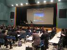 いよいよ2時から、全体会が始まりました。予定では県内各地からモデル校の160人が参加ということでした。県教委の挨拶があり、県の発表です。続いてモデル地域事業のサブ地域から三人の先生が、これまでの実践発表をしました。熊本市の発表は、井芹中学校の井上先生です。三年間の事業ですから、数多くの実践がありました。それを20分ほどにまとめるわけですから、本人も苦労したと思います。