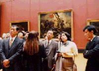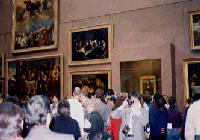 左の写真の中に、「モナ・リザが」見えます。この絵だけはガラスケースで保護されていました。人だかりができています。それを見つめる私ですが、理解に苦しむようにも思えます。