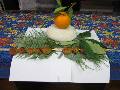 午後に買い物に行き、机の上にお鏡を飾り、玄関に注連縄を吊るしました。