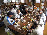 公民館の準備は妻がしていましたから、お楽しみの表彰と反省会が12時に始まりました。男性上位3人・女性上位3人・5位・10位・15位・ブービー賞・そして参加賞も含めて全員に景品を渡しました。優勝した方には、計1000円程度の日用品です。乾杯のあと、弁当食べながらおしゃべりが続きました。解散したのは、2時過ぎでした。