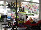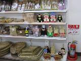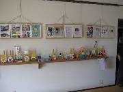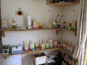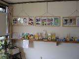 | 熊本市のフードパル熊本に、「とれたて市」という物産館があります。ここは地域の野菜や果物を中心に、魚・肉・乾物・お菓子・弁当等が販売されています。ここに、平成23年5月1日から委託販売を開始しました。正面入口から見て、左奥に並べています。トールペイントは15個を置き、少しずつ「くまモン」グッズを増やしています。 |