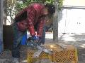 2月4日ころには落ち葉の袋がかなり減りました。その代わりに、竹や木材の袋が多くなりました。小さな竹や木材の次は木製かさ立て等の分解です。ハンマーで分解して、ノコで切ります。金属部分は埋立てゴミにします。