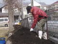 まずは畑土と木材の入手です。12月に熊本市土木センターへ行き、畑土の申請をしました。担当者の対応が早く、1月には業者が二トントラックで2台分の土を運んできました。1月10日のことです。山のような土が、数カ所に分散してありましたので、作業するのには好都合です。