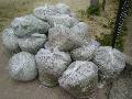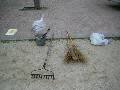 自転車にまたがり、レーキ等を持って公園到着。昨日刈った草が散乱していましたので、レーキを使って草を集めました。30分作業したら、小さな山がいくつもできました。ボランティアの最初の人は、7時20分に来たのです。その後、一番目立つところに、掃除用具を置きました。竹ぼうきや45リットル袋です。