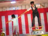 自分の責任を果たした後は、友人と一緒に飲み放題になります。上の写真は、パフォーマンスショーをしたおてだまクラブ「茶茶」です。いろんな技を披露してくれましたが、子どもを使っての演技が上手でした。