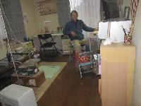 私だけの部屋が完成しました。写真は6畳程度の部屋の入口から撮影しました。ここは自由にタバコが吸えて、心をいやす場所になります。机が2個、長机が1個、椅子が3個、棚が一つになりました。