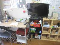 窓側に置いた机は、ノートに記録をとったりパソコン用の机になります。別の部屋にあったプリンターも、机の下に設置しました。これで公民館活動の印刷も早くなります。机の右にカラーボックスと横長の棚を並べました。最近買ったテレビを置きました。新聞を読まない私は、テレビのニュースで満足しています。しかし、テレビは作業をするときに中断することが多くなります。そこで退職してすぐに購入したCDコンポを隣に置いています。小田和正の曲を聞きながら、工作するのが楽しいです。棚の中には定形で切ったアガチス材を入れています。