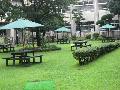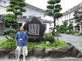 白長靴に傘を持ち、3日間のスタイルです。 右の写真は、白川中学校の中庭です。 |