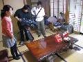 2月28日(月)TKUテレビ取材の日になりました。6時半からひな人形工作の道具を、何度も往復して和室に並べました。人形セットや箱や道具を並べ、カメラマンが撮影しやすいようにセットしたのです。9時半になり、TKUの車がやってきました。中原さんとカメラ担当の人と計3人。お茶を出して、しばらく打ち合わせをしました。制作工程に従って、説明しながらひな人形に腕や手、道具に着物などを接着したのです。あらかじめ人形15個のうち完成した人形を4個、その他は途中でやめて、完成まじかの状態です。五段飾りの箱も途中までにしていました。そして、完成したひな人形の撮影が済んだのは、11時半頃でした。