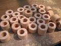 木製の筒は、1.5〜2cmです。これはのこぎりで切って、サンドペーパーで磨きます。これで、取れない矢のパーツが揃いました。 | ![]() |