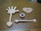 「取れない矢」は、一年前から作っています。ハート形の木に通していましたが、切って磨くのに時間がかかります。そこで、百円ショップで長さ20cmの木材を利用することにしました。中は直径15mmでくり抜いてあります。これを1.5〜2cmで切ります。これも、「取れない矢」のパーツになります。