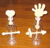 左の四つを利用した「取れない矢」です。細工をした後は、矢もハートも取れません。もちろんボトルの口から入れた手のひらも取れません。 | ![]() |