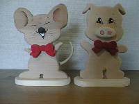 私がネズミ年生まれですから、左の作品はいくつか作りました。これも新聞折り込みの絵を元にして型をつくりました。小さな絵を拡大コピーして、原図にします。蝶ネクタイを首につけて、アクセントにしています。
