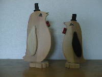木工関係の図書に紹介してあったペンギンを作りました。大きさを変えれば、親子のペンギンになります。帽子もいいのですが、足のデザインが気に入ってます。二つの足が一つになっていて、切りやすく考えられています。これを利用して「ピーナツ人形」に利用できないものかと、日夜工夫しています。