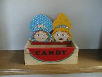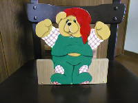 ティッシュペーパー用のケースです。絵のデザインは、アーディー・ハンセンさんです。この絵が気に入ったため、いろんな工作に利用しました。本来の作品はウエルカムボードになっていました。アメリカの人はスイカが好きなのでしょうか、よく見かけます。この作品で時間がかかるのは、女の子の帽子の柄です。一つ一つが花になっていて、鉄筆でていねいに作ります。