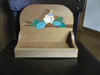 ティッシュペーパー用のケースです。絵は山田俊子さんの作品ですが、本来は本棚に描かれていたものです。木の葉の色がうまく出せませんでした。箱の部分は浅い作りですが、実用的でした。我が家の台所で活躍しています。