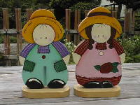 栗山貴子さんのデザインです。絵がかわいいので、何個か作りました。服の色を変えやすく、作るときは勝手に色を決めています。一度高さ30cmほどに拡大し、山北小学校の花壇に立てました。保護者の方に喜んでいただきました。図書に紹介してあった作品はかなり小さなものです。