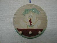 コリーン・ミラーさんのデザインです。壁掛けやキッチンペーパーホルダーの作品に利用しました。小物がかけられるよう、木球をつけました。友人にプレゼントするときは、実用的な物が喜んでくれます。