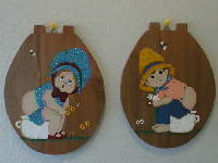 自宅のトイレには、この二つの作品を掲げています。アーディー・ハンセンさんのデザインです。友人に作ってくれるよう依頼されていますが、一ヶ月経ってもできていません。忘れた頃にプレゼントするのも、いいものです。二つセットになっているので、時間がかかります。