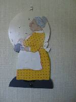 やかんを持った女性の絵は、アーディー・ハンセンさんの作品です。壁飾りにしました。本来はキッチンペーパーホルダーのためのデザインでした。