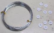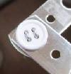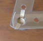 @ 最初に考えたのは、ボタンとアルミ線を利用する方法です。穴にアルミ線を通して、裏で曲げる方法です。角の穴が大きいので、ボタンを利用したのです。アルミ線にした理由は、安全面と加工しやすさです。しかし、角がグラグラするので、最良の方法ではありません。