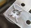 この割りピンの長さは2cmでしたから、5ミリ残して切り落としました。しかもこの品物は1枚の金属からできていますから、引き伸ばして広げることができます。このようにして、プレートの接続をしました。