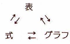 学習過程の中で、関数の表現方法が多くなります。それは、表・式・グラフのことです。生徒にとっては、今何を学習しているのかがつかみにくくなります。