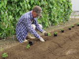 ピーマン ダイキの苗20株を植えました。間隔は60cmで一列です。畝C 4月6日植付け