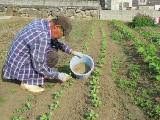 9月下旬に発芽しました。楽しみです。9月25日に肥料をまいて土寄せしました。モグラの穴が目立ちます。