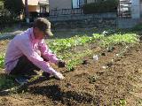シュンギク 種が余っていたから、ソラマメの横に種まきです。発芽したら近所に配布。畝C 10月17日種まき