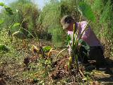 10月上旬にはイモの葉が枯れたので、カマで取り除きました。これで収穫するときは便利です。