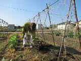 スナップエンドウ パイプを利用して、スナップの種まきをしました。畝E 10月20日種まき