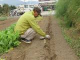 ホウレンソウ ソラマメの予定地ですが、広いのでホウレンソウの種を一列まきました。畝A 10月8日種まき