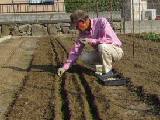 ニンニク 倉庫のニンニクがたくさんあるので、3列の種まきをしました。畝E。 10月29日種まき