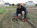 ニンニク 今年収穫した国産ニンニクを利用しました。畝1列に、3列の種まきです。畝D 9月15日植付け