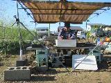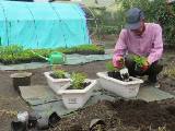 サトイモ キャベツのあとを耕して、サトイモの植付けです。種イモは昨年の親イモです。畝B。 3月23日植付け