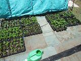 4月下旬から晴天が続き、熊本県は乾燥注意報が続きました。毎朝、畑での水かけを続けています。午後の作業でも、水かけをして帰宅しています。5月12日からポットに移植作業を始めました。