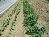 エダマメ 美味しいエダマメです。畝一列に種は3列です。カラス対策にネットをかぶせました。畝A 4月7日種まき