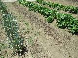 この場所は地下の土が固く、条件が悪い畝になります。3月末に発芽しましたが、まばらです。土寄せしました。5月中旬から花が咲きました。5月下旬から収穫を始めました。6月15日に引き抜いて処分しました。