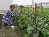 ナス 今年もナスを植えました。毎年長ナスにしています。畝CD 4月7日定植