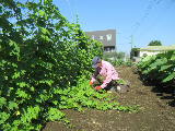 4月中旬から発芽が始まりました。楽しみです。5月6日にネットを外しました。6月中旬からサヤが膨らんできました。6月29日に初収穫です。
