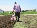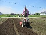 耕運機で2往復して耕しました。30cm間隔にして、牛フンと肥料を与えました。雑草の芽が目立ちます。4月下旬からちらほら新芽が出てきました。5月19日に草取り。5月20日に肥料をまいて土寄せ。6月17日に肥料。